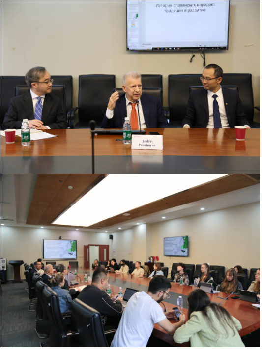 10月22日下午,白俄罗斯国立大学历史系教授Andrei Prokhorov应邀在我院普陀校区理科大楼A416室作“斯拉夫国家的历史:传统与发展”专题讲座。俄罗斯研究中心执行主任刘军、白俄罗斯研究中心主任贝文力主持,20余名师生聆听讲座。