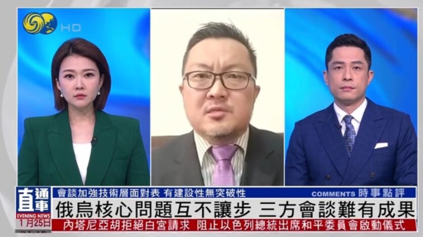 1月25日,郑润宇参加凤凰卫视《时事直通车》,担任专家点评美俄乌三方会谈