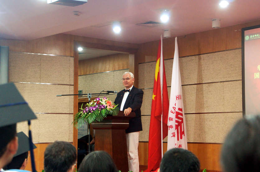 在授课期间,林奇教授还在华东师范大学百场校级学术讲座上为来自全校的师生作了一次专题讲座,参加了华东师范大学国际关系与地区发展研究院承担的两个暑期学校项目。6月24日,林奇教授还参加了国际关系与地区发展研究院举行的研究生毕业典礼,并发表了热情洋溢的致辞。国关院今年毕业的唯一一名博士研究生唐慧云同学在林奇教授的帮助下,曾在弗吉尼亚大学进行为期两年的访问研究。林奇教授在致辞中对冯绍雷院长说,他把唐慧云同学也视为自己真正的学生,同时也为唐慧云同学进入上海社会科学院工作感到骄傲。