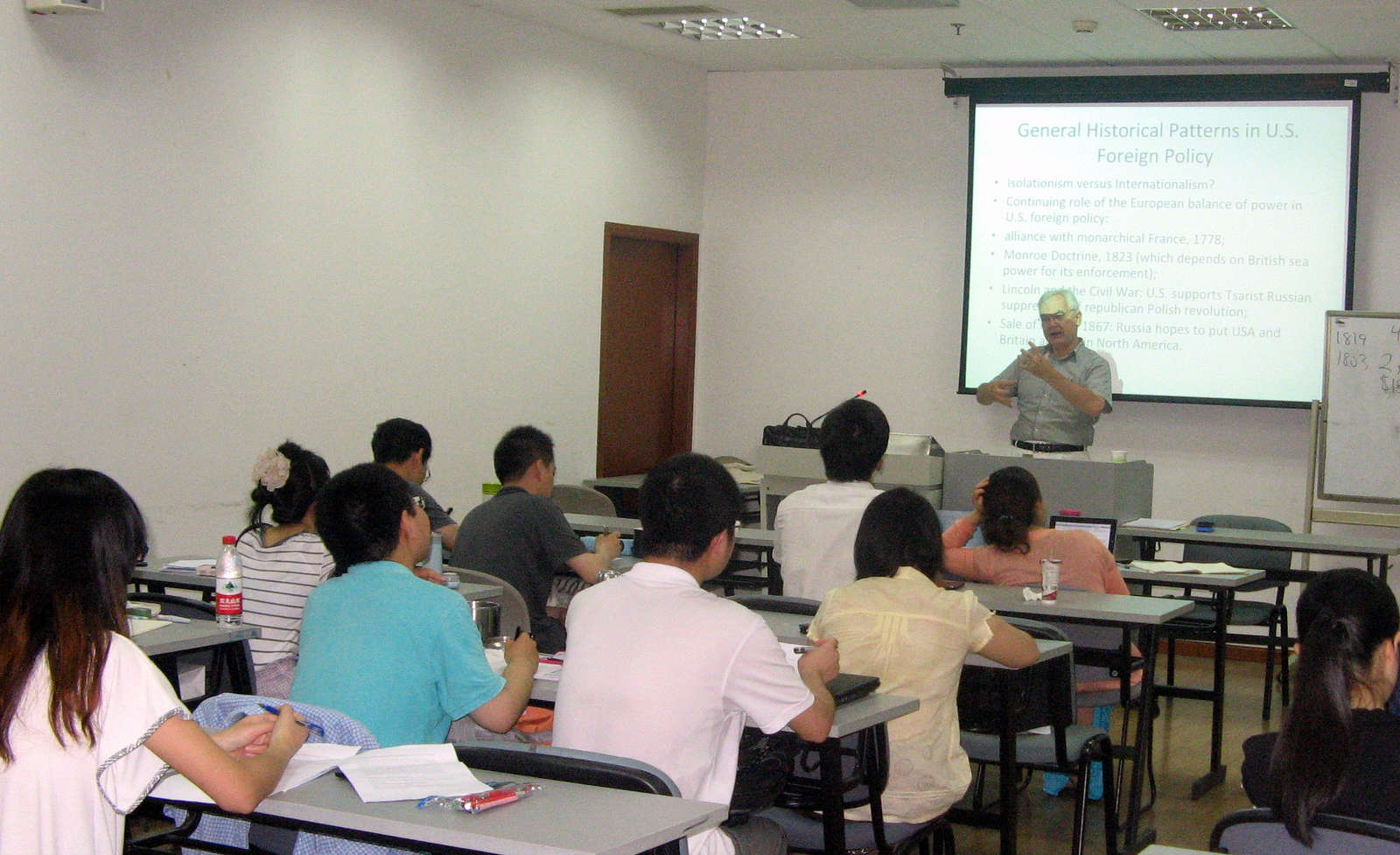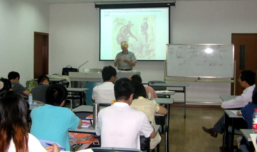 根据《国家中长期教育改革与发展规划纲要(2010—2020年)》和《华东师范大学第十二个五年发展规划(2011—2015年)》的精神,在华东师范大学研究生院的大力支持下,华东师范大学国际关系与地区发展研究院、教育部人文社会科学重点研究基地——俄罗斯研究中心邀请美国弗吉尼亚大学国际关系学教授Allen Lynch从2013年6月12到7月19日来沪为研究生讲授“国内政治与美国对外政策”课程,获得了研究生们热烈的欢迎。