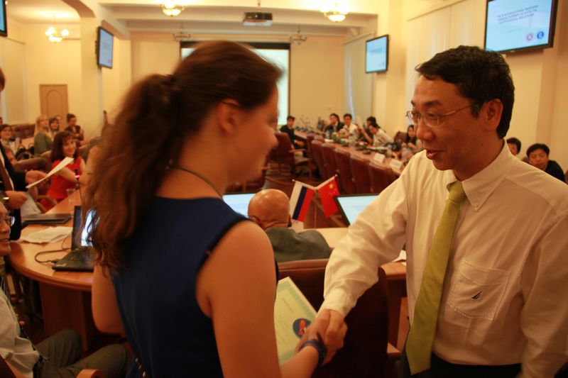 访俄期间,朱自强等出席了2013年“中俄国际关系暑期学校”结业式,并为学生颁发证书。