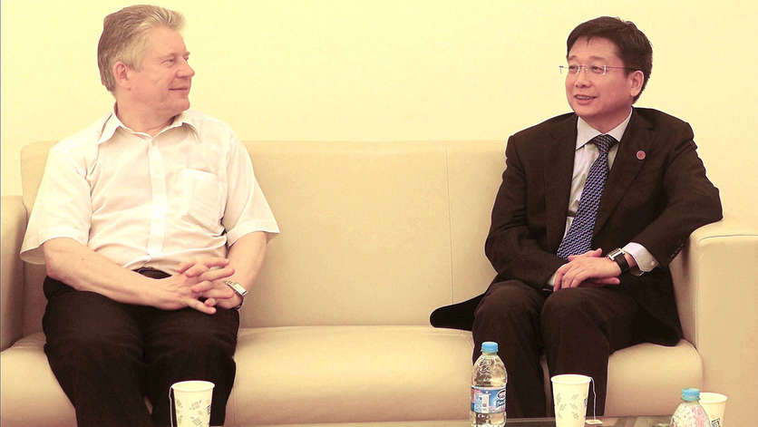 陈群向马斯凯维奇介绍了我校近年来国际合作交流的现状与成果、我校白俄罗斯研究中心的工作进展,并就深化与白高校间的交流、拓展务实合作提出了一些建设性建议。马斯凯维奇表示,白教育部将全力支持华东师大与白高等院校在人才培养、科学研究等方面开展各种形式的交流与合作,支持华东师大白俄罗斯研究中心的建设。陈群还应询介绍了上海纽约大学的办学理念和实践,宾主就全球化条件下培养具有国际视野的新型人才以及中白在此方面合作的可能性等问题进行了讨论。
