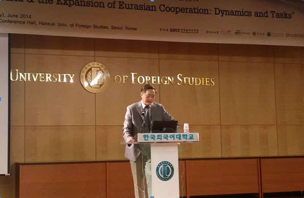 2014年6 月27-28日,中心主任冯绍雷教授、研究员杨成副教授应韩国斯拉夫研究中心(KASS)的邀请,赴韩国首尔参加第六届东亚斯拉夫-欧亚研究会议。本 次会议的主题为“东亚国家和平的建构和东亚合作与联系的加强”。会上,冯绍雷教授做题目为《东北亚空间结构的历史性变化与地区合作的前景》的主旨演讲。这 是除了东道国代表,亚洲斯拉夫国际大会唯一的主题演讲。杨成副教授就东亚国家欧亚研究合作网络的机制化问题及上海承办2016年会议的初步设想等发言,并 作题为“The Eurasian Moment in Global Politics: A Comparative Analysis of the Big Powers’ Strategies for Regional Integration”的发言,还担任“Cooperation and Confrontation: Russo-Chinese Relations after the Aigun Treaty (1858) to the Present”分会场三篇论文的评论人。