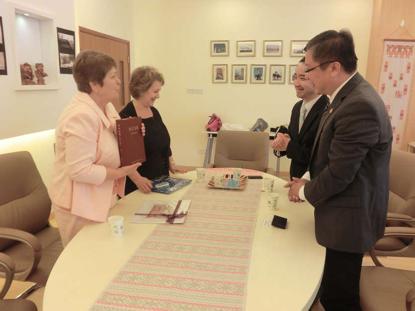 随后,校党委副书记兼副校长任友群在国际关系与地区发展研究院与阿·西蒙诺娃校长一行会谈。国际交流处副处长王素斌,国关院党总支书记兼副院长、俄罗斯研究中心副主任贝文力参见了会谈。任友群回顾了近年来中俄两国间以及我校与俄方高校间的交流合作,并表示期盼着我校与乌拉尔国立师范大学早日开展更深入的合作。最后,任友群将由华东师大国关院和俄罗斯研究中心组织编译并已出版的《普京文集》赠予阿· 西蒙诺娃校长留念。阿·西蒙诺娃校长表示,回国后要将这份珍贵的礼物收藏于该校图书馆,供学校师生查阅。