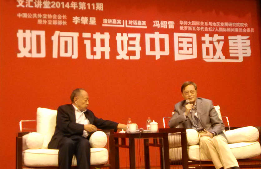 9月13日下午,华东师范大学国际关系与地区发展研究院长、俄罗斯研究中心主任、周边中心主任冯绍雷教授受到文汇报社邀请,赴文汇讲堂对话中国公共外交学会会长、前外交部长李肇星。李肇星会长用自己的亲身经历生动阐释了“如何讲好中国故事”的主题,并与华东师范大学国际关系与地区发展研究院院长冯绍雷教授就当前国际热点问题、自己亲历过的历史瞬间以及变化中的世界进行了探讨与交流。