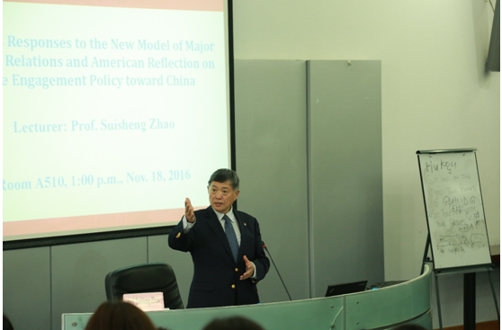 赵教授在讲座中谈到,经历了对外战争、经济危机、种族隔阂等负面影响的美国已无心与中国对抗,在这种境遇下,美方认同中国提出的新型大国伙伴关系中的“不冲突、不对抗”理念。虽然,双方对此关系的理解和期待不完全相同,但基本共识还是中美之间必须避免大国对抗和零和博弈。
