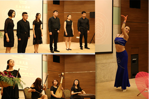 随后,华东师范大学艺术团的同学们为大家带来了极具中国特色和俄罗斯、中亚民族风情的乐器、歌曲和舞蹈表演,精彩的表演让大家赞不绝口。