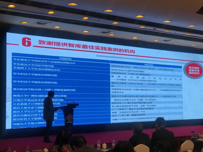 2019年12月19日,周边中心行政主管金仁芳老师应邀出席“2019新型智库治理暨思想理论传播高峰论坛”,本次论坛在北京举行。论坛由南京大学和光明日报社联合主办,来自中央及各省市思想理论和智库管理部门领导、中央重点高校科研管理部门领导、中国智库索引(CTTI)来源智库、智库研究界著名专家学者及媒体记者共600余人出席。经过管理部门推荐、机构申报、业内专家评审、在线填报数据审核,周边合作与发展协同创新中心入选区域研究与国际关系领域Top15,评估PAI总分值稳居第一。此外,2019 年度CTTI来源智库优秀成果奖评选同日揭晓,光明日报智库研究与发布中心和南京大学中国智库研究与评价中心组织专家评选出了52个“2019年度CTTI智库最佳实践案例”。周边合作与发展协同创新中心的国家特别委托项目“美苏冷战相关专题研究及其成果后续出版”光荣入选。
